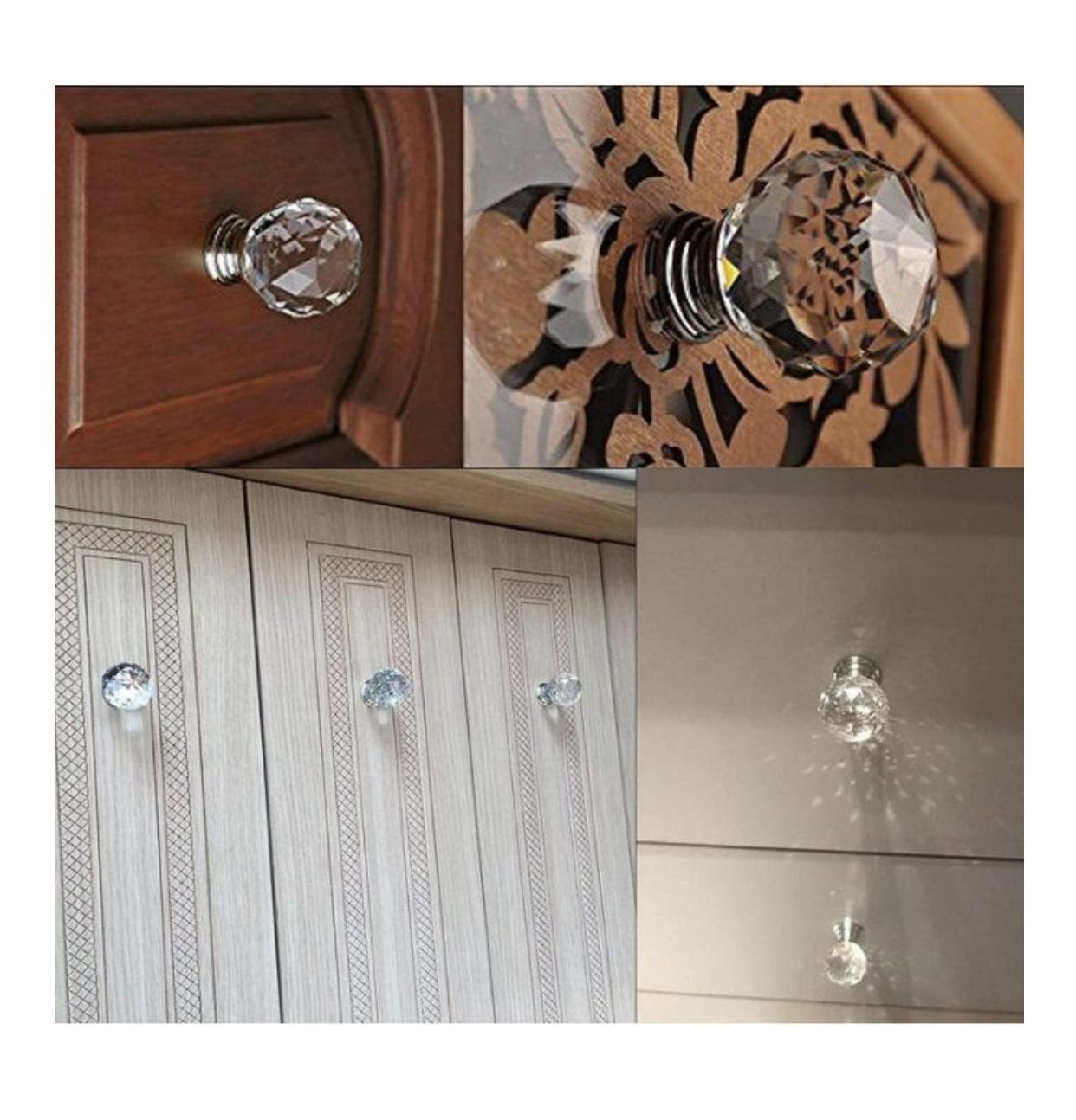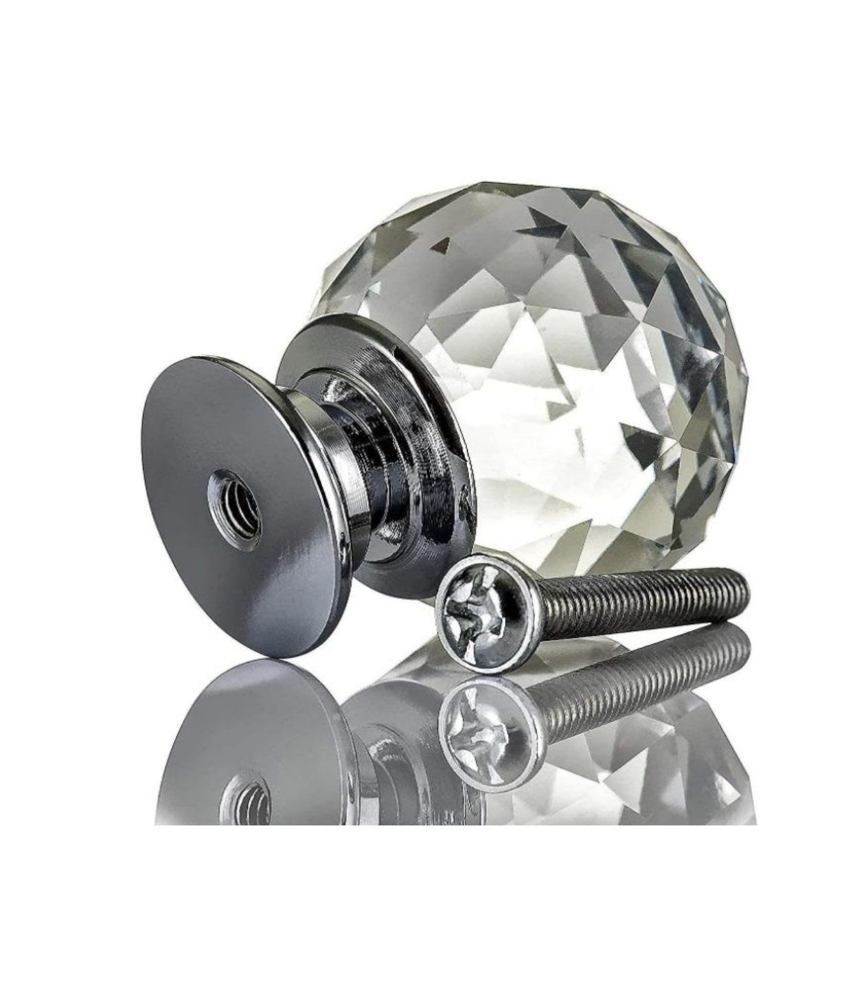 This pack of four crystal knobs combines dazzling design and effortless functionality. Measuring approximately 37 mm (1.5″) in diameter, each knob catches and reflects light for a sparkling accent on furniture and cabinetry. The high-quality crystal glass is securely mounted into a chrome-plated metal base for durability and easy installation. Suitable for use with dresser drawers, cabinet doors, wardrobes, or as decorative drawer pulls—these knobs elevate any space with refined style and robust quality.