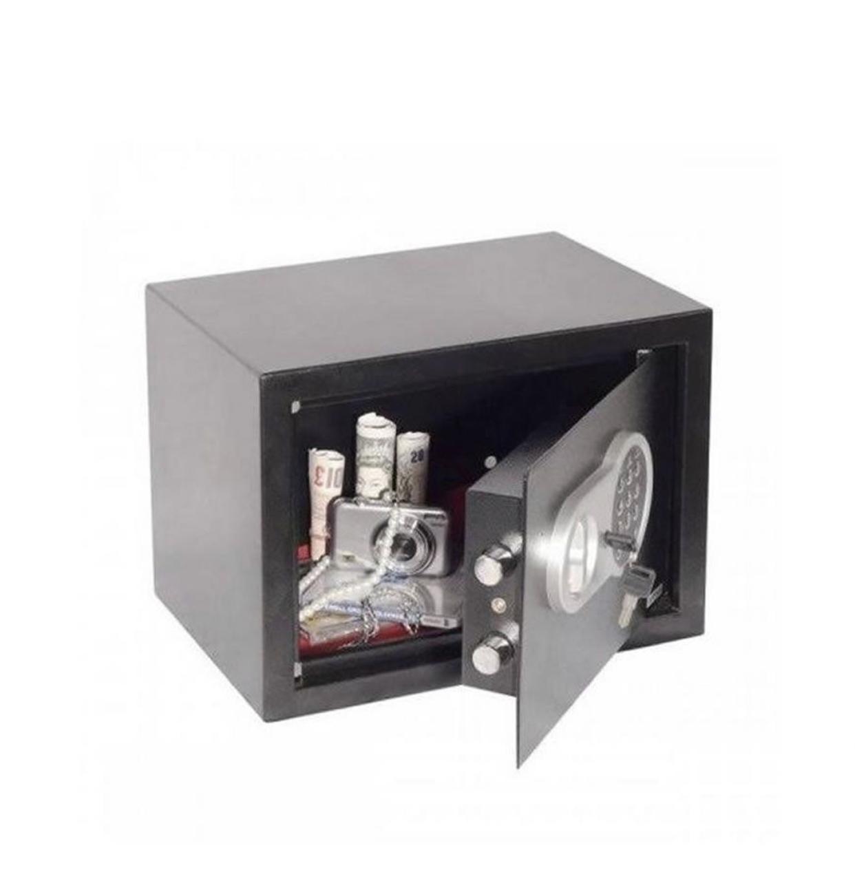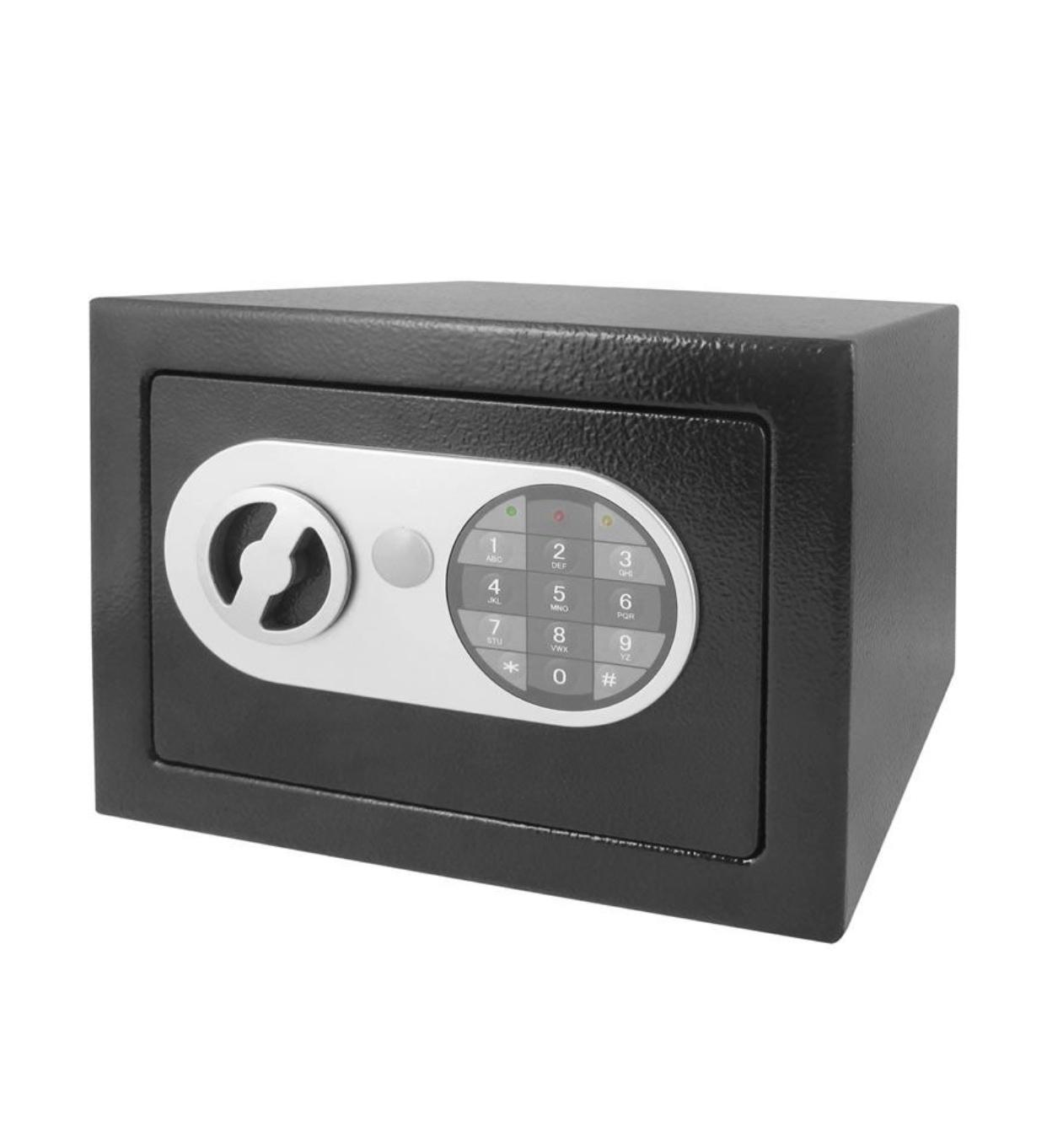 Safeguard your valuables with the 23 x 17 x 17 cm Digital Electronic Safe Security Box. This compact yet robust safe is ideal for securing cash, jewelry, passports, and other essential items in your home or office.